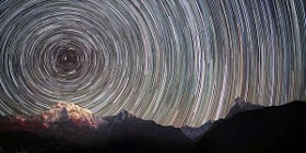 Ini terlihat seperti cat rumah di pinggiran kota pada 1970-an. Namun gambar menakjubkan itu sebenarnya jejak bintang yang berputar di atas Gunung Everest, Himalaya.