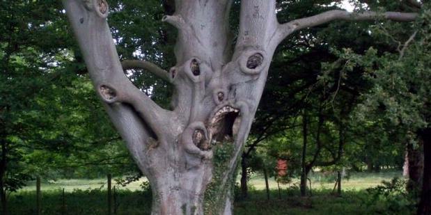 Pohon di Stowlangtoft di Bury St Edmund, Sufflolk, ini terkenal bukan karena tingginya yang mencapai 21 meter, melainkan karena bentuknya yang mengerikan.Lubang-lubang pada pohon itu membentuk wajah yang mengerikan, terlebih bagian mulutnya. Bahkan lubang "mulut" yang lebar itu tampak memiliki gigi dan lidah yang terpelintir.