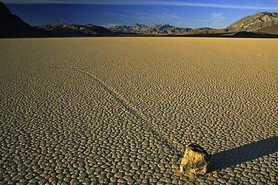 Di timur pegunungan Panamint di wilayah Death Valley National Park, California, ada sebuah tempat yang disebut Racetrack Playa. Letaknya 3.708 diatas permukaan laut, panjangnya 2,8 mil dan lebarnya 1,3 mil. Tampat ini memiliki posisi hampir sama tinggi dari ujung utara ke ujung selatan. Ujung utara hanya lebih tinggi 5 cm dari ujung selatan. Di tempat inilah salah satu fenomena misterius yang membingungkan muncul. Batu-batu yang bergerak dengan sendirinya.